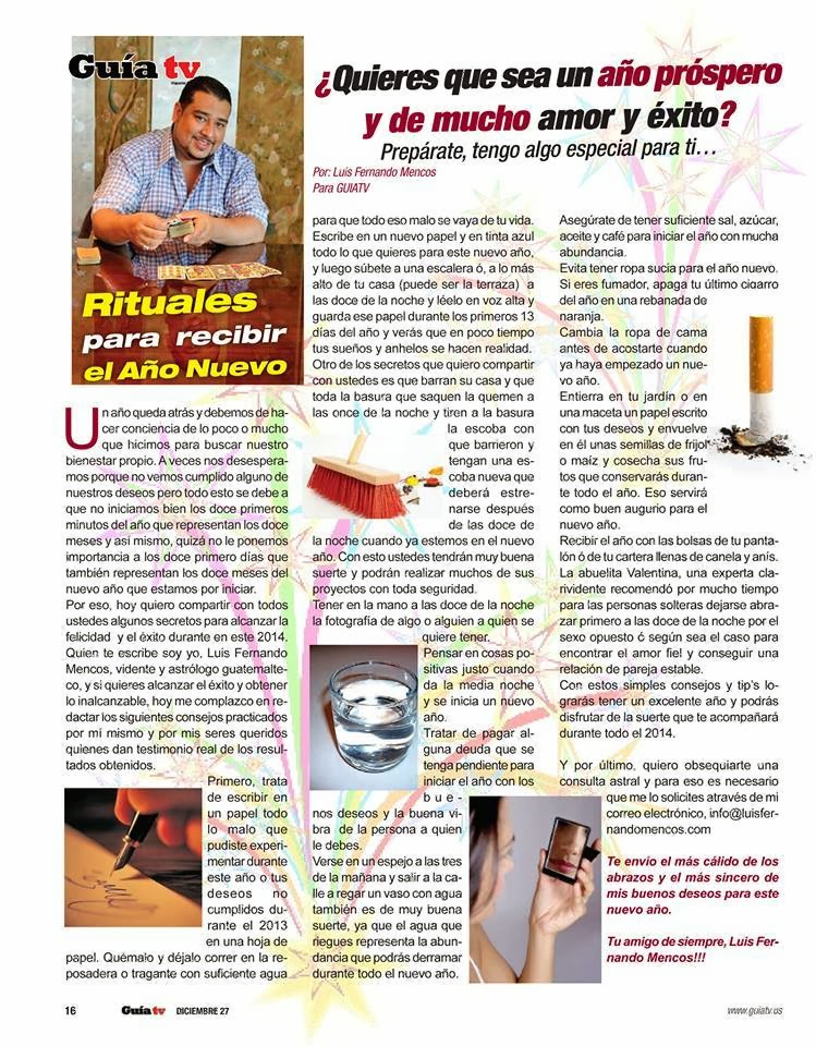 En dónde publica sus predicciones? Publico en la revista Gráfica Internacional que tiene cobertura en México, Argentina, Los Ángeles CA. Y Colombia. También publico para la prestigiosa revista “GuiaTv” que circula en el estado de Chicago Illinois.